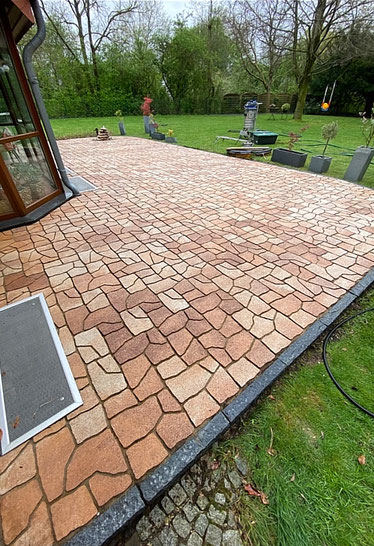 Pflaster- und Natursteine werden in einem schonenden Verfahren gereinigt.