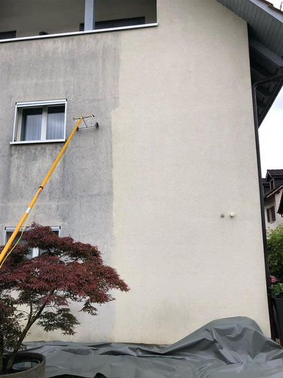 Durch unsere mobile Arbeitsbühne, mit einer Arbeitshöhe bis zu 14 Metern, ist es uns mögliche ohne teuren Geerüstaufbau zu arbeiten.